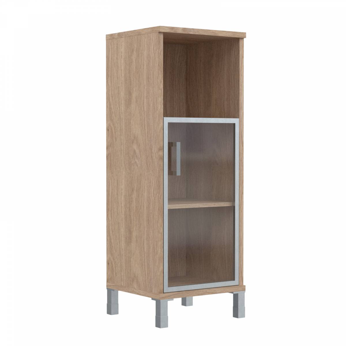 Шкаф-колонка низкая со стеклянной дверью в AL-рамке B 411.4(R) Дуб Девон 475х450х920