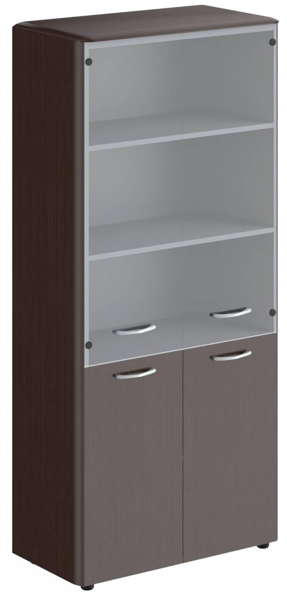 Шкаф средний со стеклянными дверьми и обвязкой DMC 85.2 Венге Магия 892х470х1185